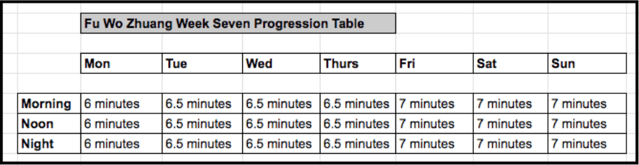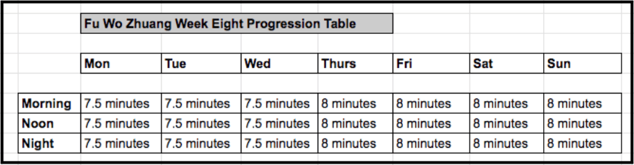 After completing eight weeks of constant practice take a day or two off and then, after a warm up, shoot for a maximum time hold. This will allow you to re-set the progression tables and give you a further time allowance to hold the posture against as you continue with your training.