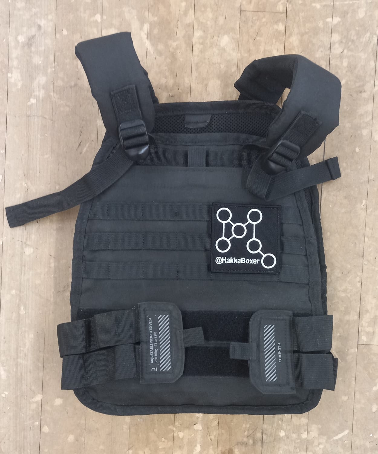 Fig. 1 - The authors well used 6 to 10kg weight vest sporting our MOLLE patch logo.